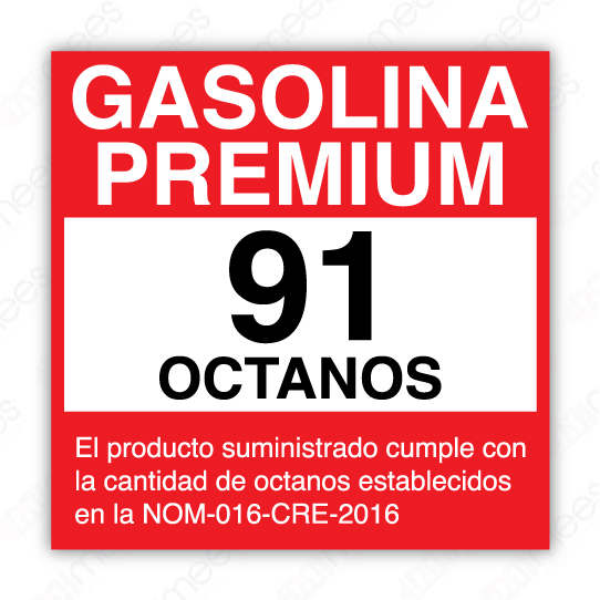 SES 028 Señalamiento Gasolina Premium 91 Octan0s